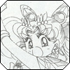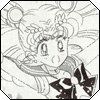 This is Chibiusa's dark queen form, brought about by Wise Man. In this form he calls her his dark queen and she sits beside him on the throne of Nemesis, although she is occupied entirely by 'Endymion,' who is in actuality the brainwashed Tuxedo Kamen. Because of her affinity with the ginzuishou she has immense evil powers. Eventually it is the sacrifice of Sailor Pluto and her death which drive Chibiusa to wake up into her true self, Sailor Chibimoon. She cries one single tear which flares into the ginzuishou, and the curse is broken and she transforms for the first time. As Black Lady Chibiusa stands just slightly shorter than Sailor Moon, her own taller odango coming up to crest at the same height as Sailor Moon's shorter, rounder ones. Otherwise she seems to be mature adult in body, although she remains a twisted, immature child on the inside.