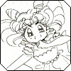 This is Chibiusa's pretty sailor suited warrior-in-training form that she finally attains near the end of the Crystal Tokyo story. Her primary color is a deep pink and her secondary is red. She wields the Pink Sugar Heart Rod and is master of the devastating Pink Sugar Heart Attack as well as the one time used Moon Princess Halation. She transforms with the power of the Mirai no ginzuishou in her Prism Heart Compact.