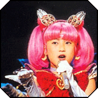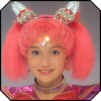 Early Myu Wig – Has sloping bangs angled in an upside down v-shape and small odango. Cosplay this violently salmon color from the First Stage Myu at your own risk.