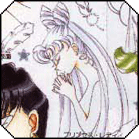 Manga New Year's Chibiusa. Hair is all up in two large, round buns. No tails, but two thin bits of hair curl from the buns and fall nearly to shoulders.